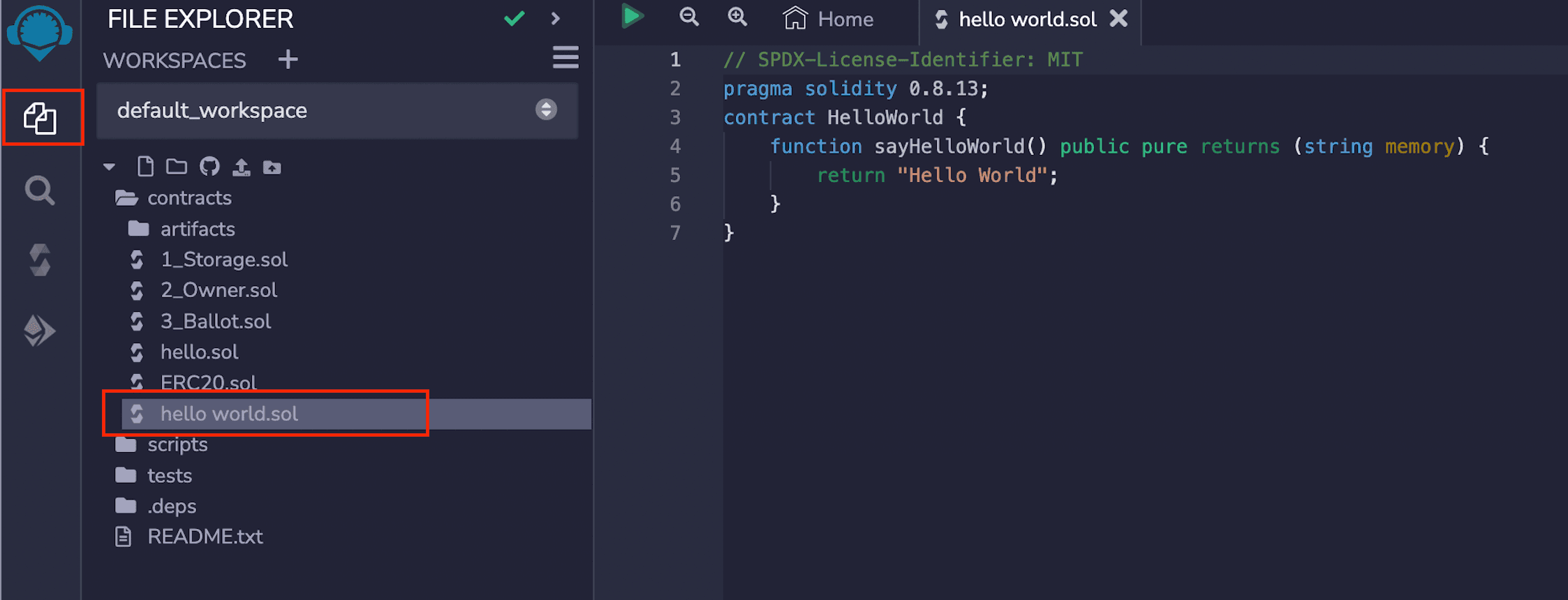 Load or create the smart contracts that we want to compile and deploy using Remix file explorer.